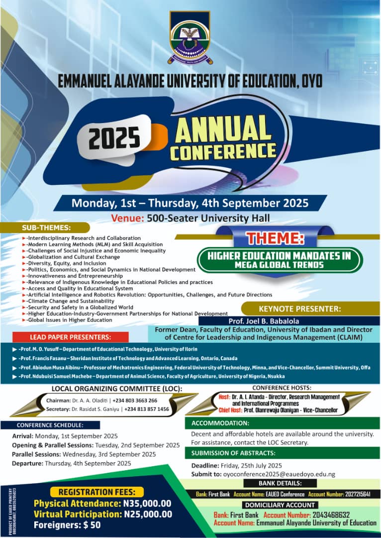 Annual Conference 2025 – Emmanuel Alayande University of Education, Oyo